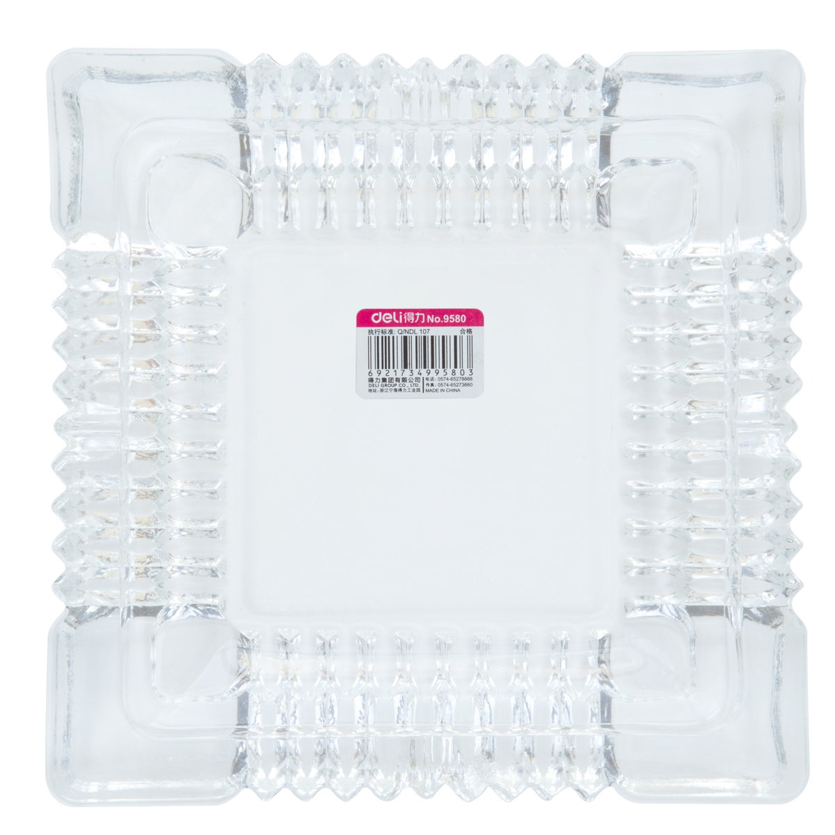 Deli 9580 large ashtray thickened glass ashtray 18*18*4cm desktop office stationery