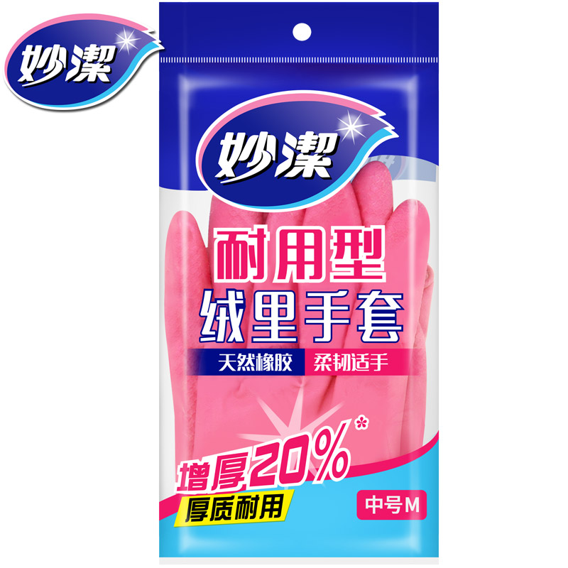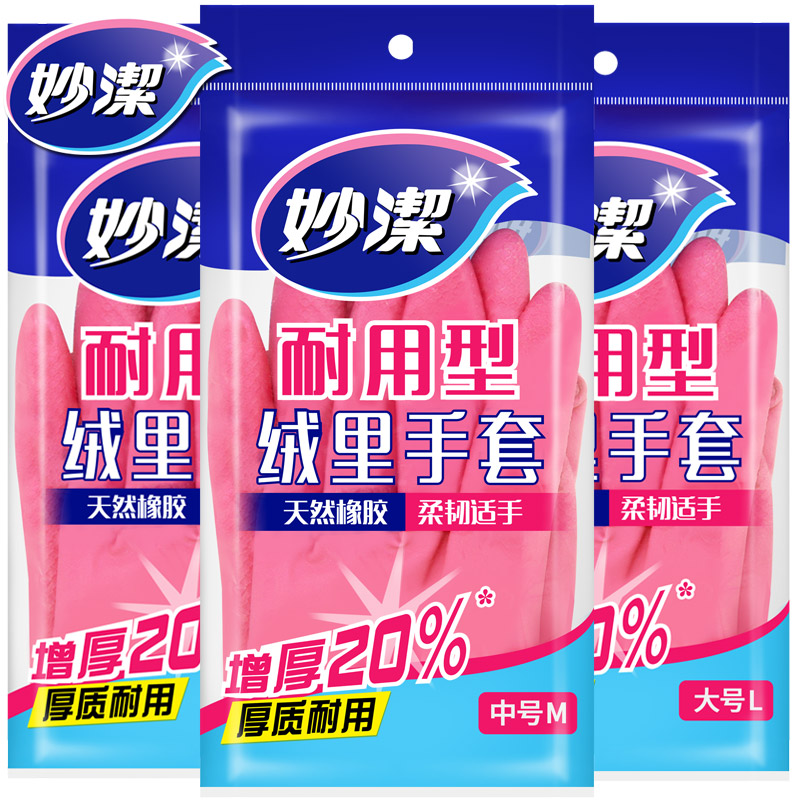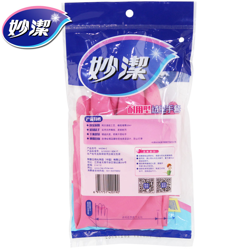 Miaojie durable velvet gloves housework dishwashing plastic gloves kitchen brushing household rubber non-slip 5 pairs