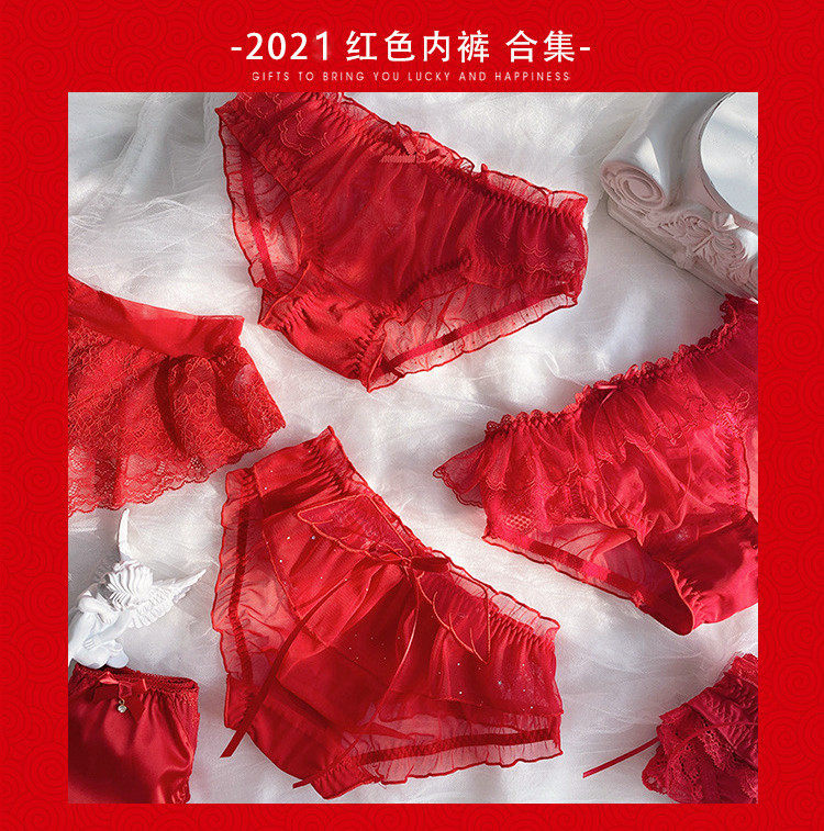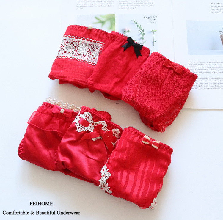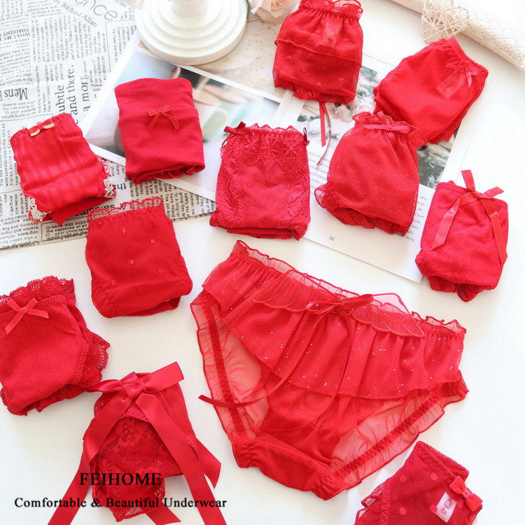 Red Briefs Lady Low Waist Mid Waist Pure Cotton Lace Sexy Girls Shorts New Year Married With Big Size