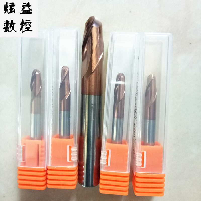 55-58 degree alloy two-blade end mill convex U pot nest type ball arc head tungsten steel milling knife D2R1*4 handle*50L
