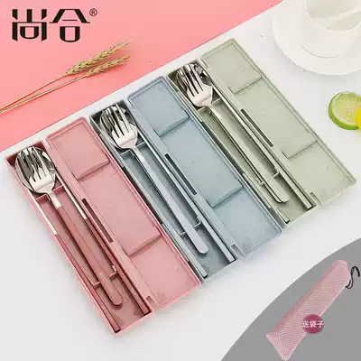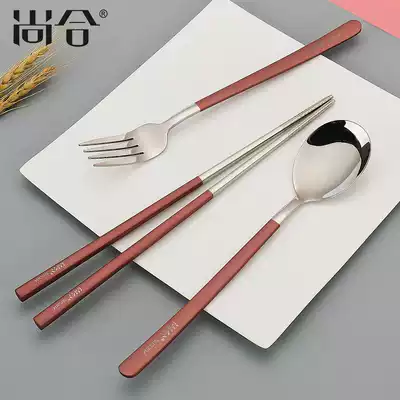 304 stainless steel chopsticks spoon set portable tableware three-piece set cute student Korean adult box spoon Fork