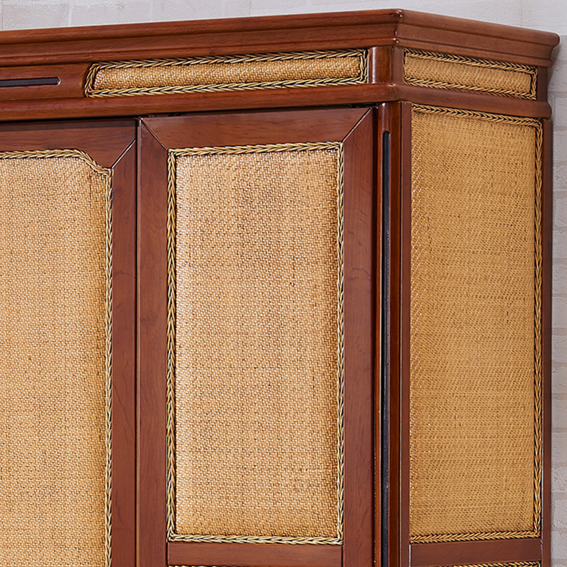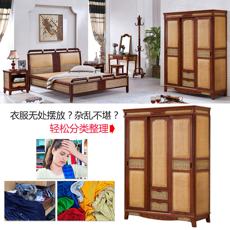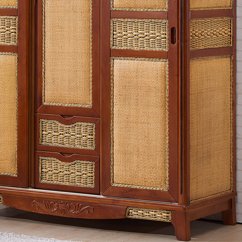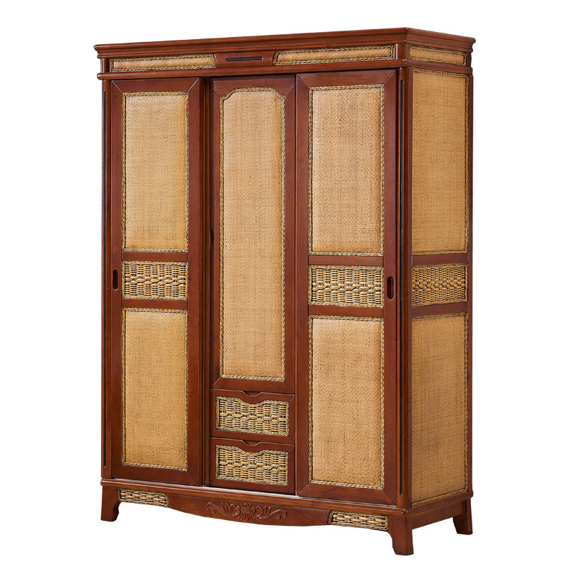 Rattan Wardrobe Solid Wood Wardrobe Chinese Rattan Wood Wardrobe Three-Sliding Door Rattan Wardrobe