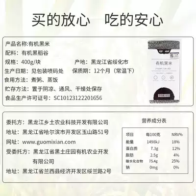 Beidahuang Mountain fresh organic black rice 400g 2 bags of hulled five grains coarse grains Babao Porridge raw materials vacuum pack
