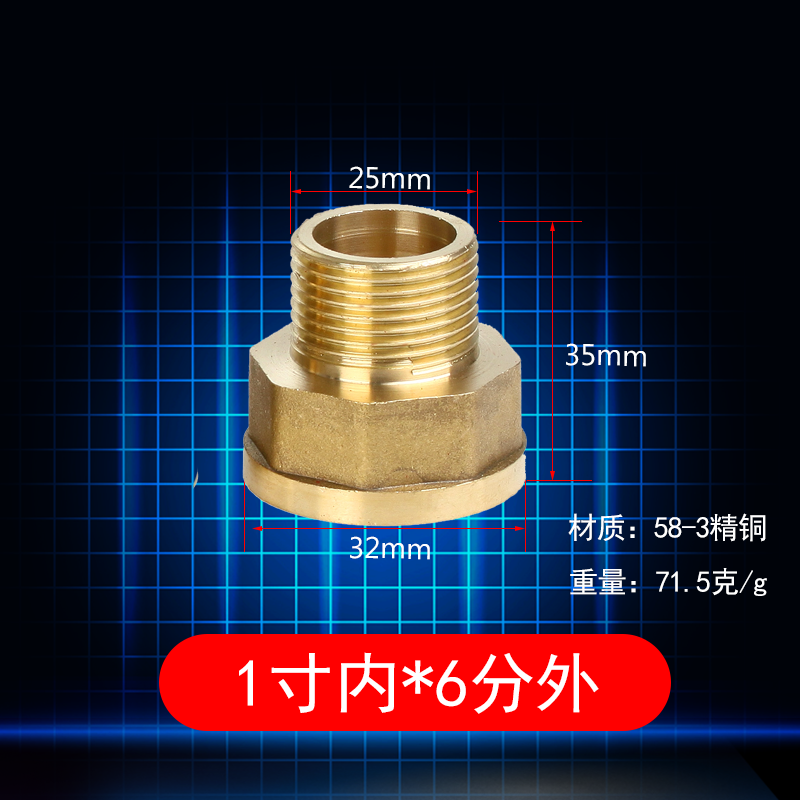 Full copper thickened inner and outer silk double male screw joint 4 points 6 points 1 inch Diameter Allodiameter Conversion Direct Accessory Size Head
