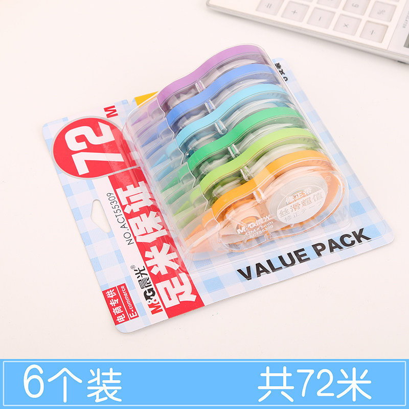 Chenguang stationery correction tape color transparent large capacity correction with primary school students correction error correction tape constantly with 6 sets of 72 meters wide 5mm foot meters silky super value equipment