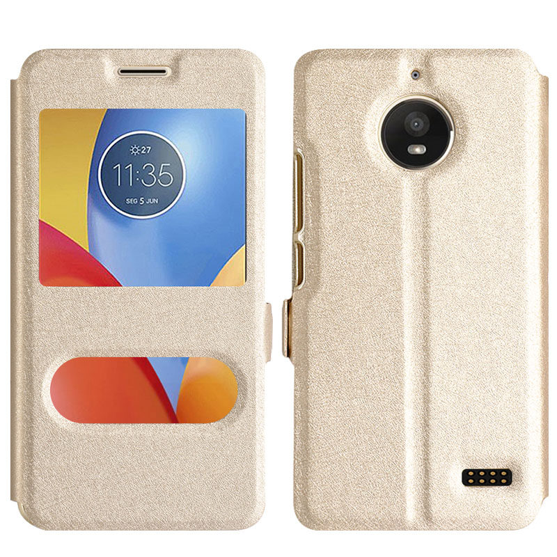 Pinyi Flip Cover Support Mobile Phone Case Protective Case Window Leather Case for MOTO E4
