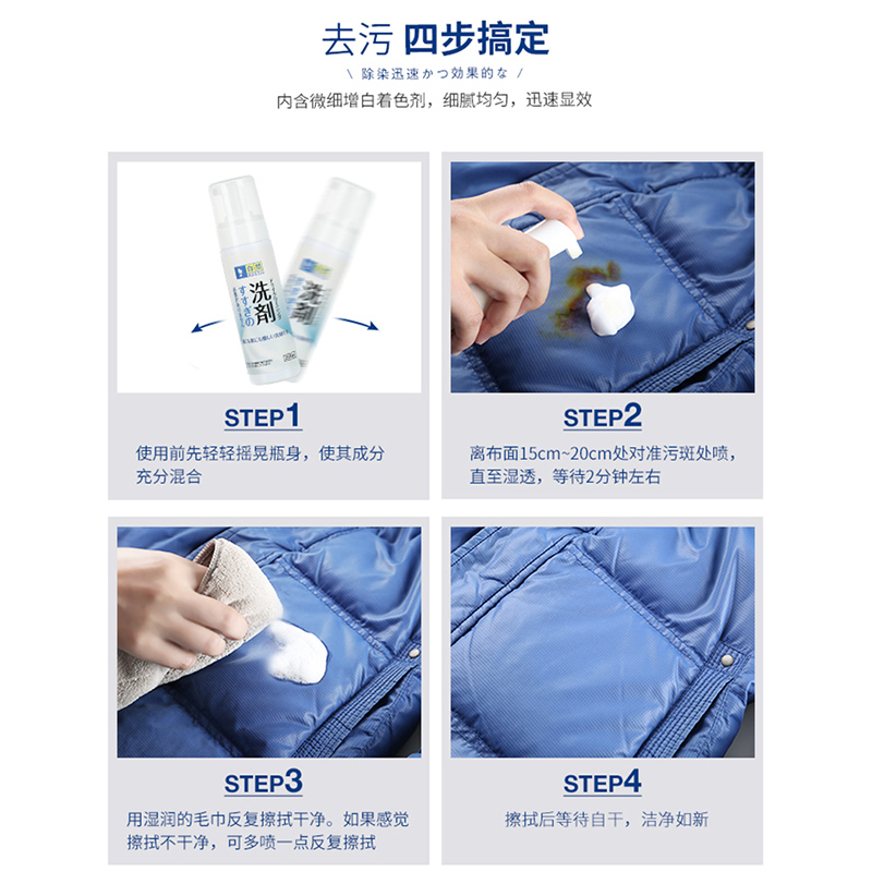 Down jacket dry cleaning agent household water-free laundry cleaning foam spray washing clothes degreasing cleaning agent