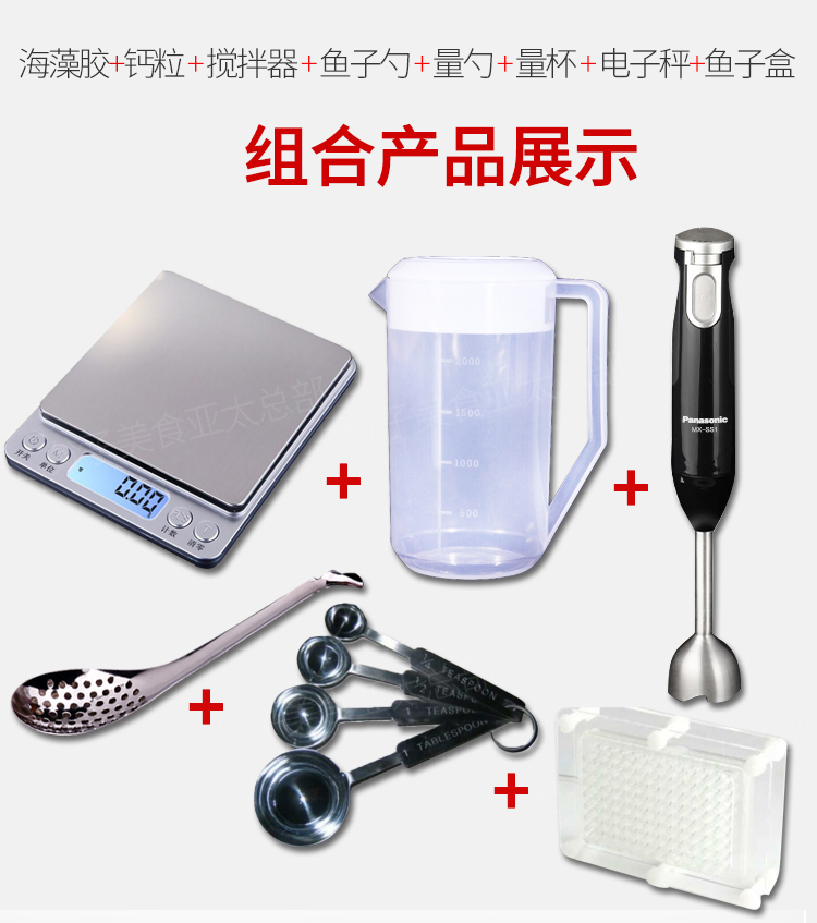 Molecular food cooking tool seaweed gum with calcium powder calcium pellet spheroidizing raw material fish roe capsule in the opposite direction
