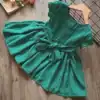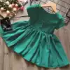 Children's 2021 summer new middle and small girls solid color V-neck large skirt short-sleeved dress princess dress 0824