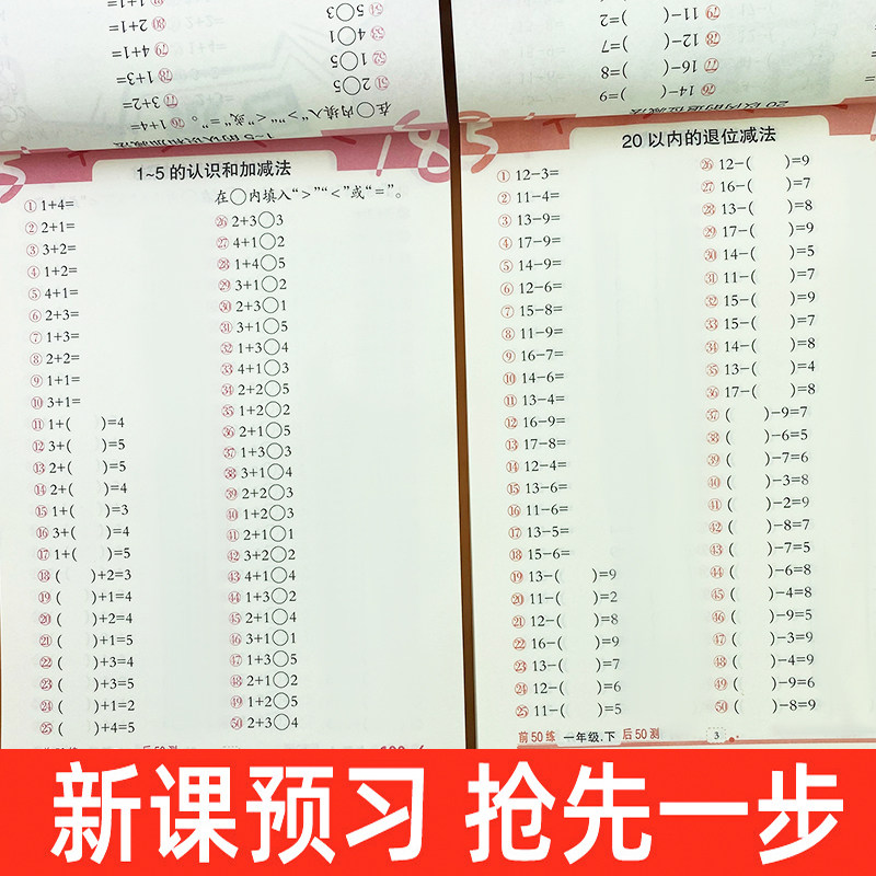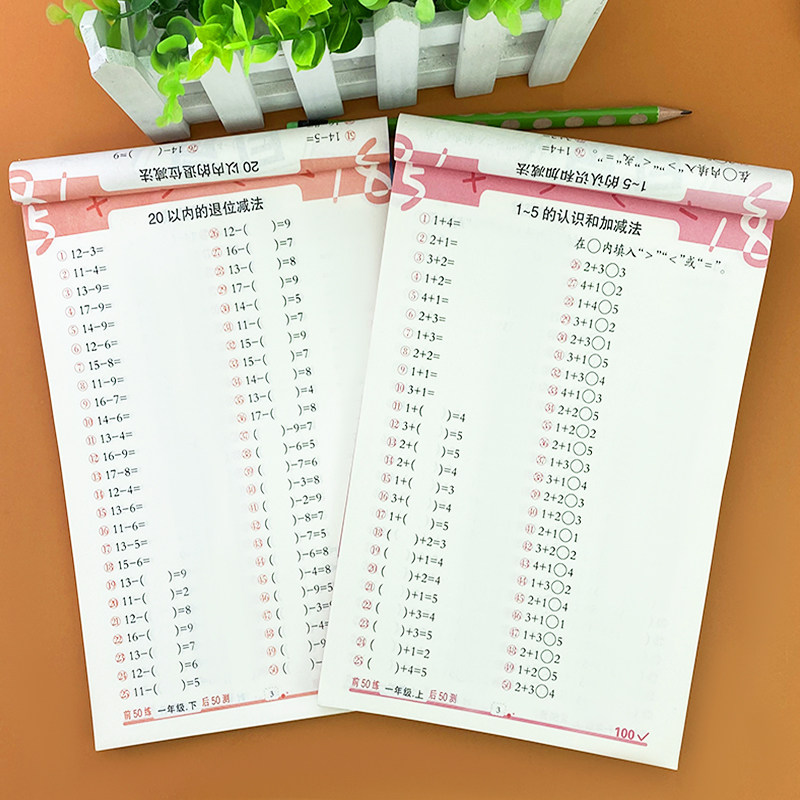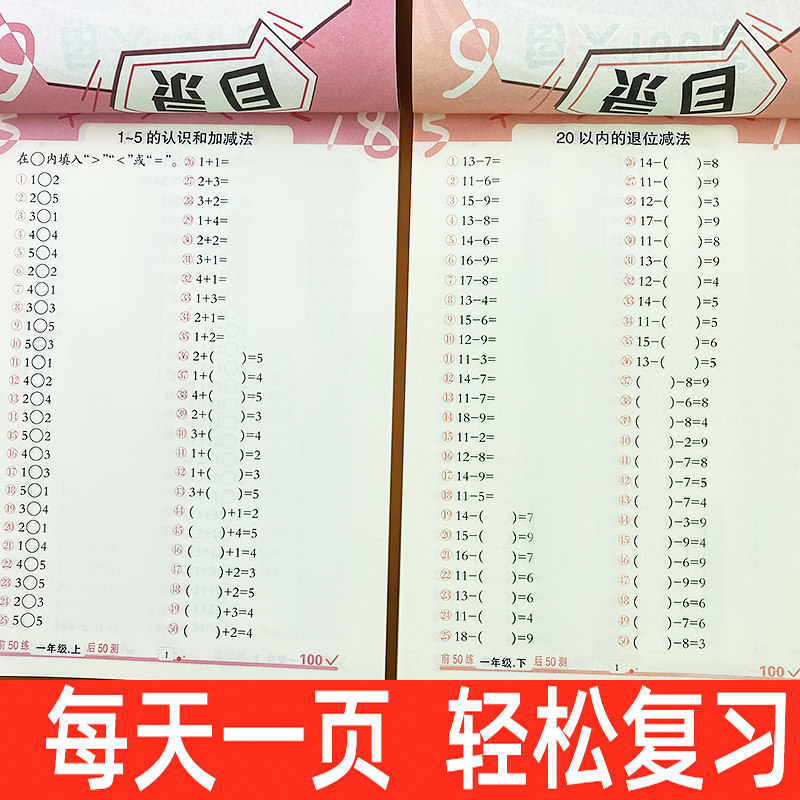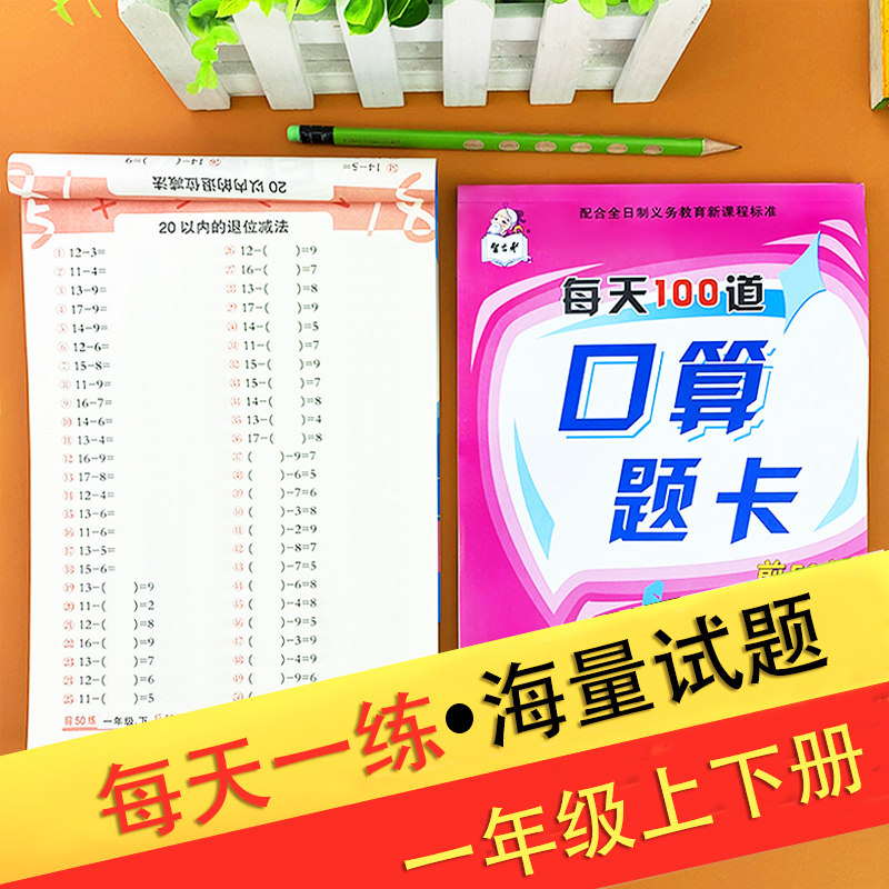 Daily 100-day math oral computing topic cards to practice first grade up and down 2 volumes of people teaching the number of people within 10-20-50-100 plus subtraction mixed-count mind speed counting teaching material genuine books Primary 1 Grade 1