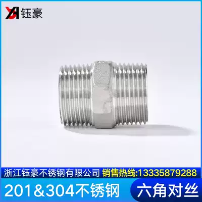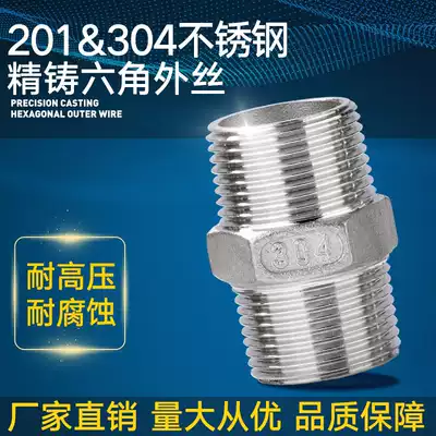 304 stainless steel hexagonal outer wire double-headed straight-through double male screw joint threaded water pipe direct heating 4 points internal connection