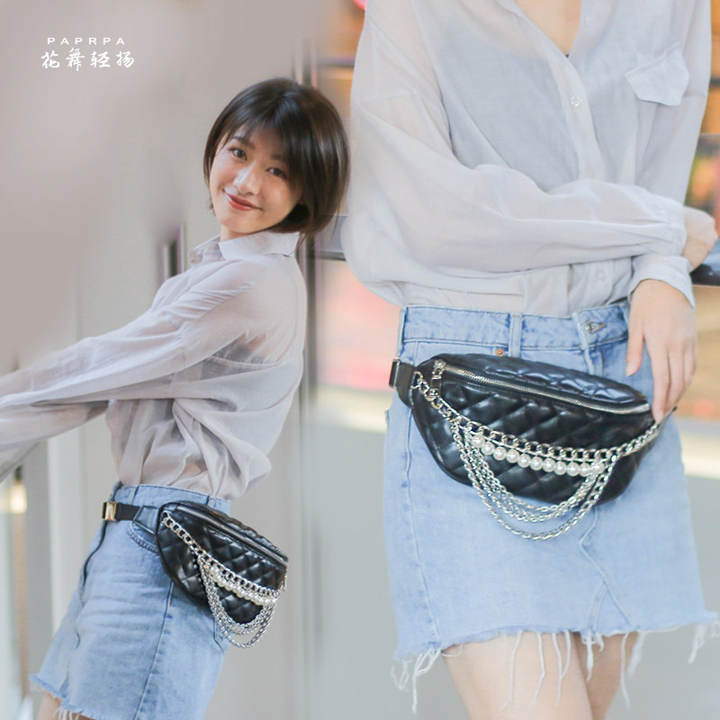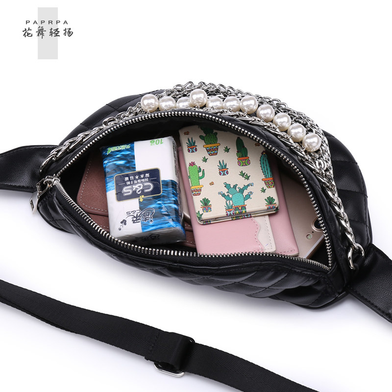 2021 new leather purse Han version Tidal Bag Women's Chest Wrap s casual Lingang Style Fashion Light Extravagant Pearl 8005