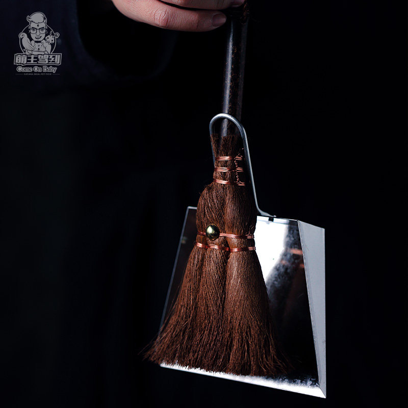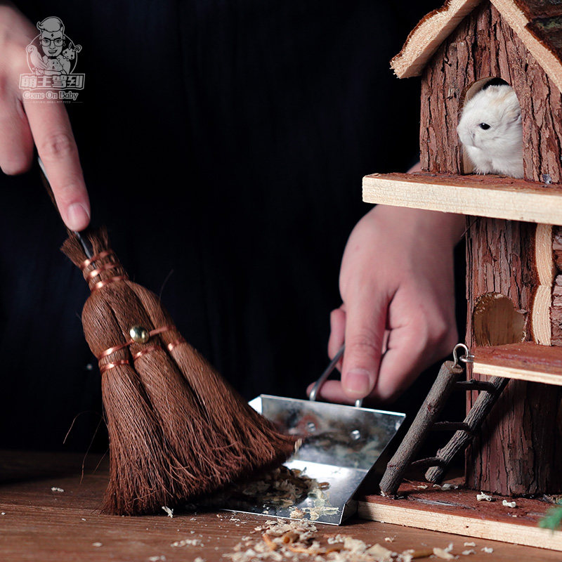 Natural hand-woven brown silk mini broom broom pet cleaning small dustpan desktop garbage shovel bucket bucket bucket