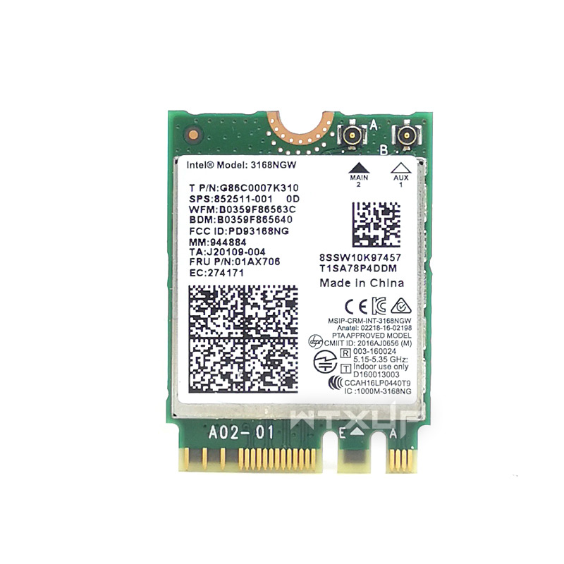 Original Intel3168AC 3160AC NGW built-in AC wireless network card 5G dual frequency 433M Bluetooth 4 2