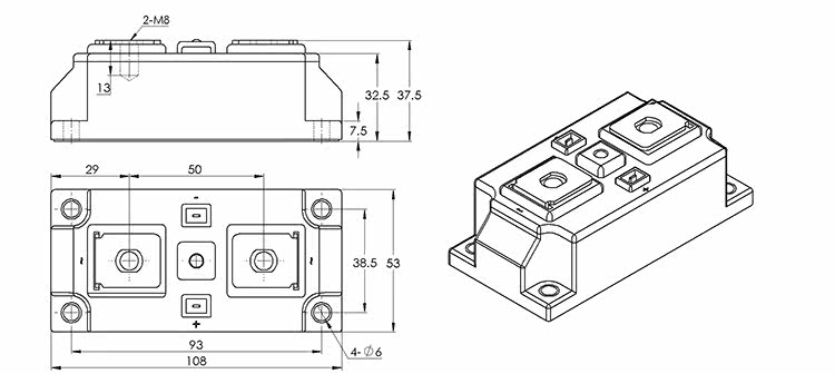 MTX250A1600V Thyristor module Anti-parallel high-power semiconductor control rectifier Shanghai Qiyi JPEC
