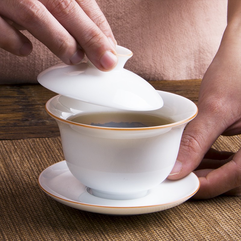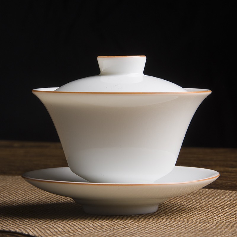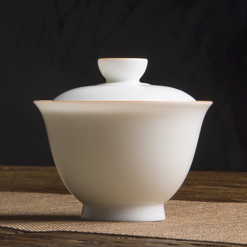 Tea Rice Workshop Sweet White Glaze White Porcelain Cover Bowl Tea Cup Big Number Multiple three only cover Bowl Ceramic Kung Fu Tea Set Main Bubble Tea Bowl