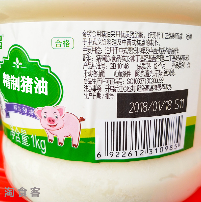 Golden gong edible lard 1kg refined lard shortening meat oil pure lard suet baking frying cooking