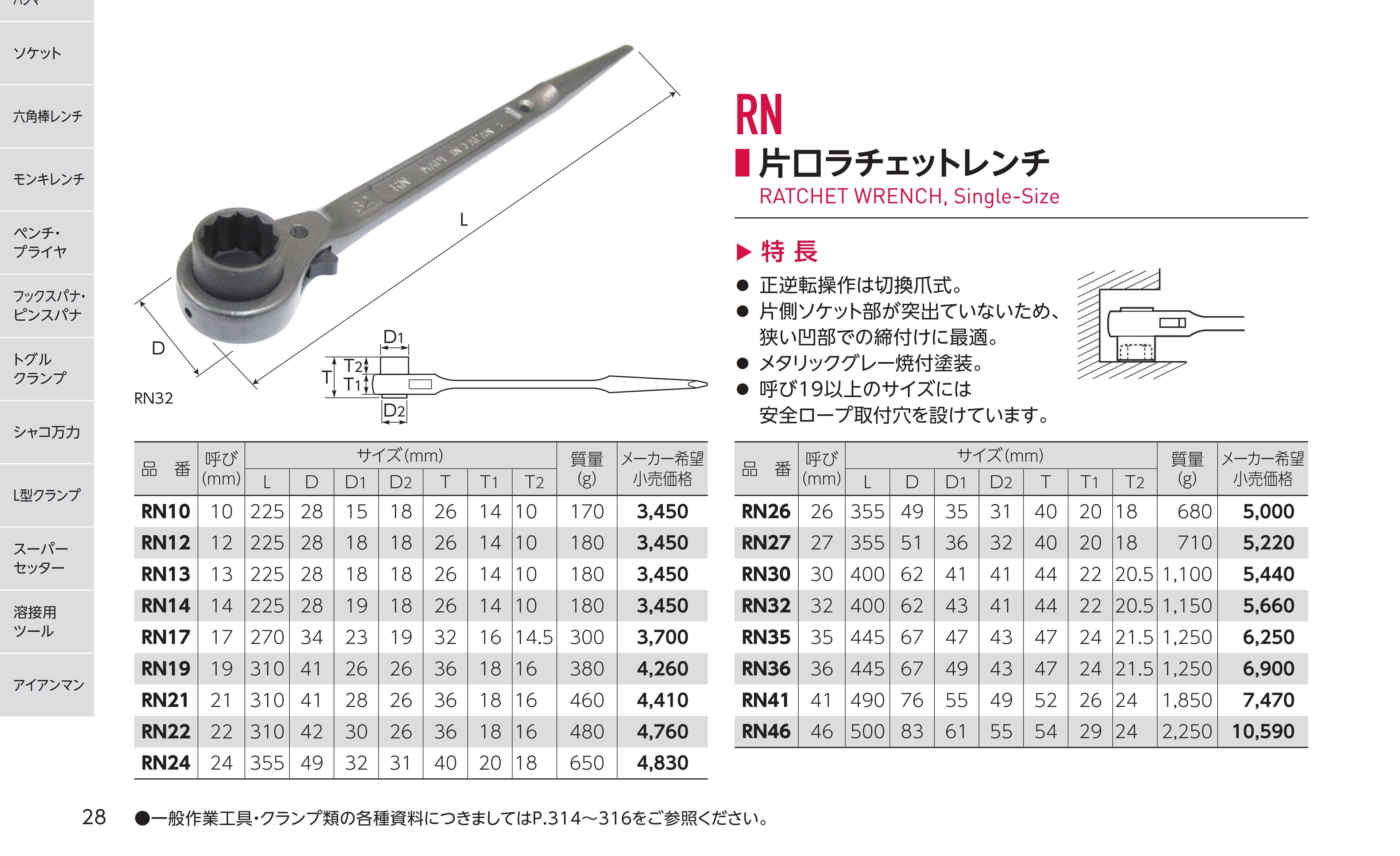 RN10 total length 225mmRN12 total length 225mmRN13 total length 225mmRN14 total length 225mmRN17 total length 270mmRN19 total length