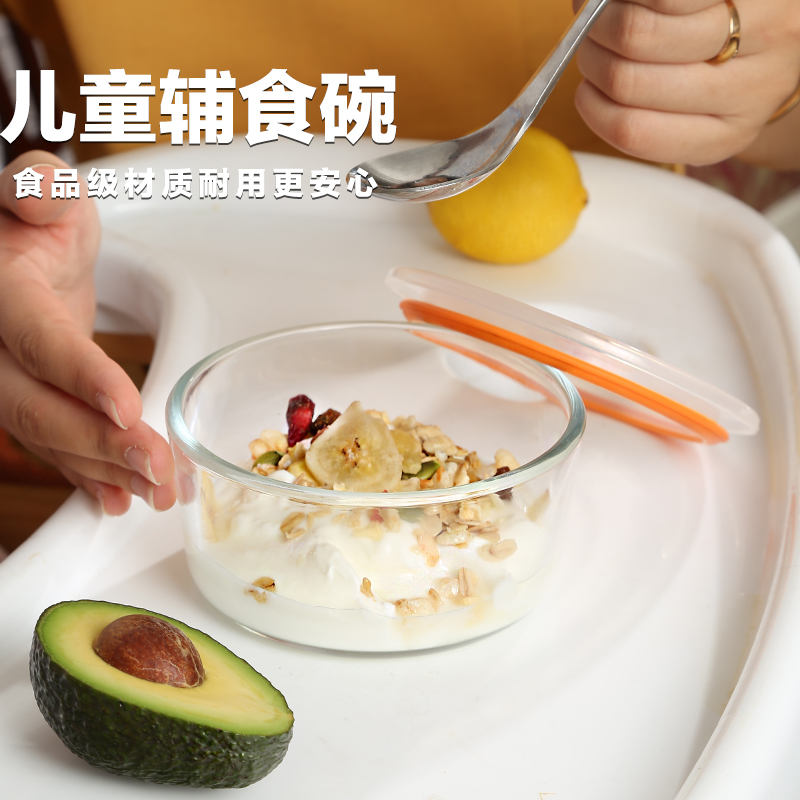 Microwave oven bowl tempered glass round rice preservation box oatmeal bowl children's steamed egg bowl with lid seal