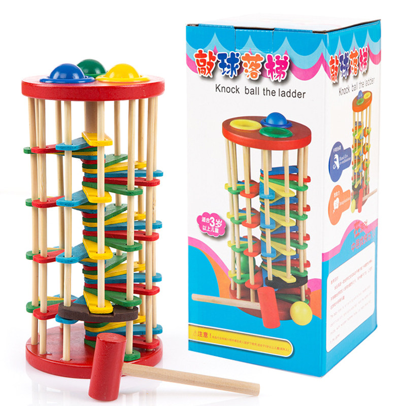 Children's wooden color knocking ball falling ladder creative knocking ball toy infant puzzle early education hands-on knocking table