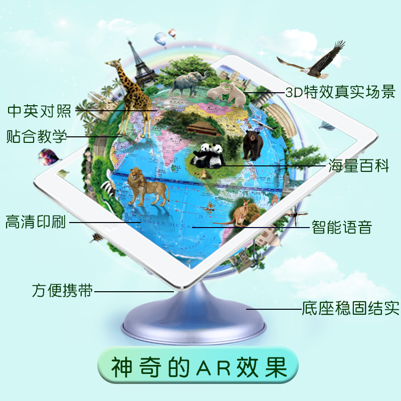 Where AR Globe 20cm HD 3d Interactive 4d Intelligent Voice Children's Puzzle Early Education Medium Small Junior High School Students Use Junior High School Students Teaching Edition 18cm Special for Junior High School Students