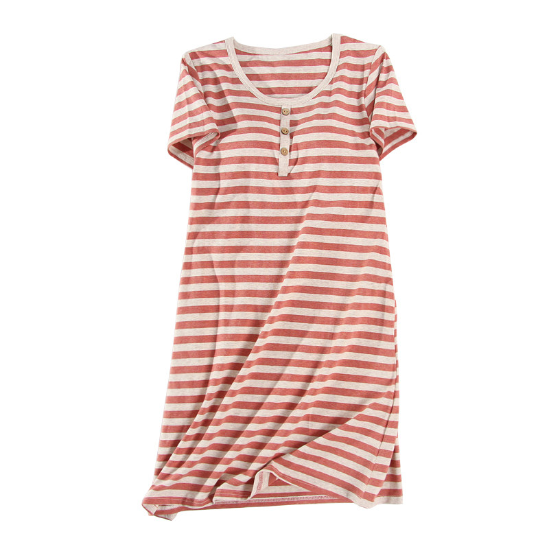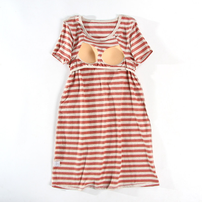 Summer half sleeves with chest cushion cotton quality sleeping dress free from wearing bra cups integral short sleeves female midskirt pure cotton pyjamas home clothes