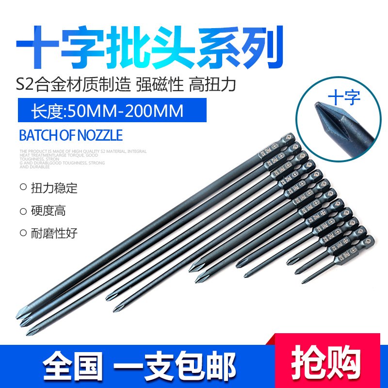 Jiafupenggong S2 material cross batch head strong magnetic set plus hard Pitou batch mouth electric drill electric screwdriver pneumatic screwdriver screwdriver