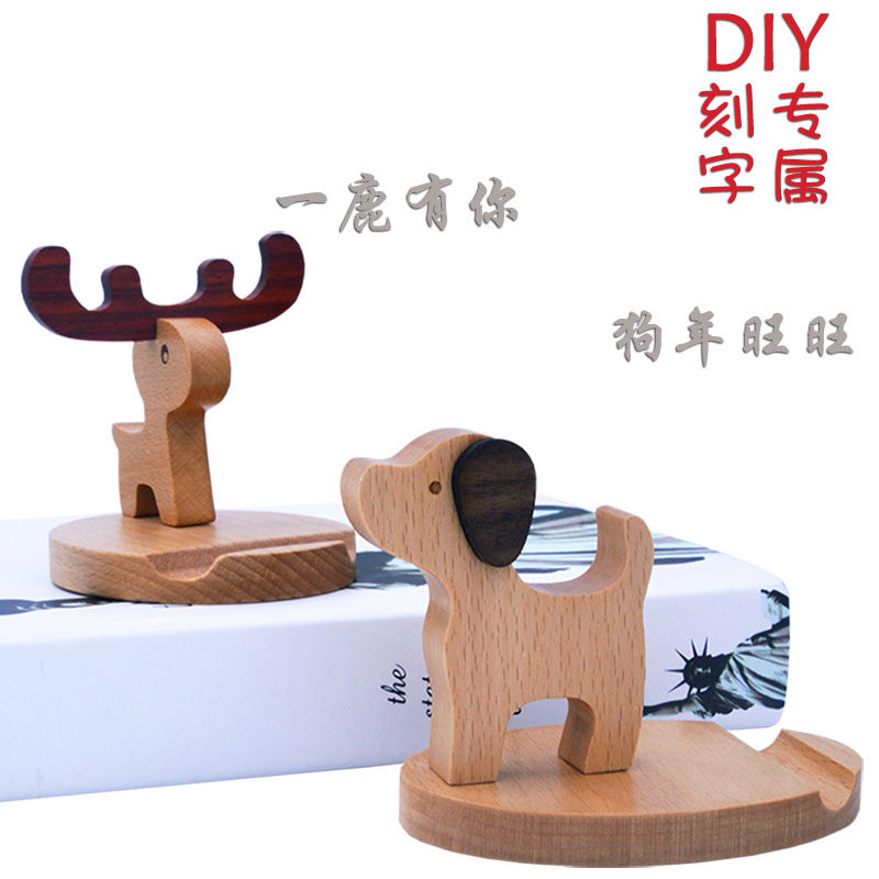Lazy mobile phone rack solid wood flat rack bedside desktop support rack Christmas gift customization company LOGO