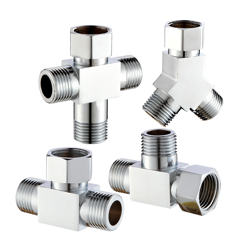 Full copper three-way angle valve 10% Two live contact tee internal tooth external wire transfer connector 4 Sub-flow water distributor shunt valve joint
