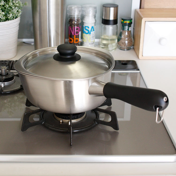 Japan Yanagi Zongli soup pot Cooking pot Stainless steel milk pot Snow flat pot Single handle with lid 16 18cm matte