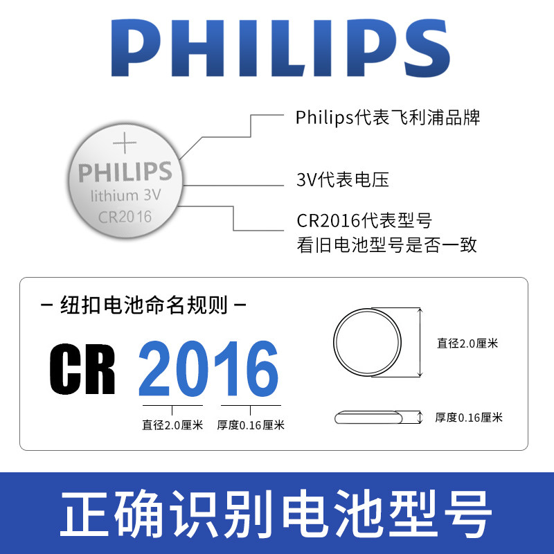 Philips CR2016 button Batteries 3V Lithium electronic Applicable Handwatch Main Board Toyota Binese CAMRY Iron General BYD Locomotive Car Remote Control Key 5 Grain Millet Body Weight