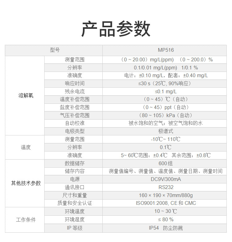 Shanghai Sanxin MP516 Desktop Dissolved Oxygen Detector Aquatic DO Instrument Dissolved Oxygen Meter Oxygen Content Detector Experiment