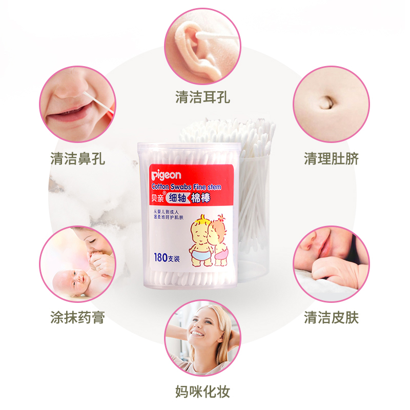 Beichen baby cotton swab Newborn ear, nose, belly button cleaning fine shaft cotton swab 180 baby products KA01