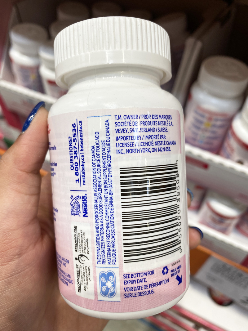 In the Canadian Nestlé Martna Materna pregnant woman complex Vitamin Multidimensional Tablets With Folate 150 Grain