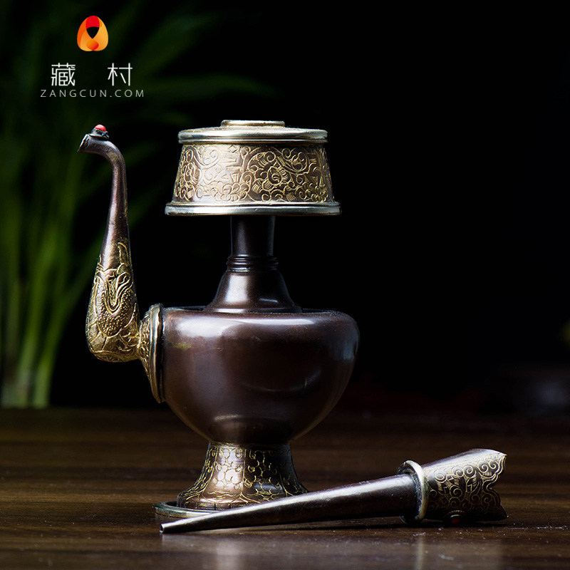 (Tibetan village) Pemba pot Nepali Tantric copper gilded carved water purification bottle for Benba pot trumpet