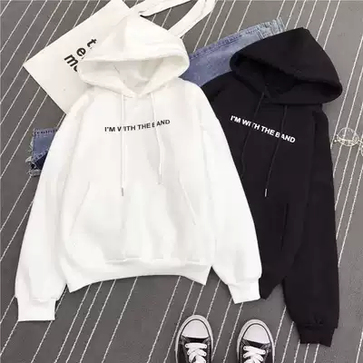 Autumn and winter plus velvet thickened cotton T female Korean version of tide students loose large size Harajuku bf style personality long sleeve hoodie