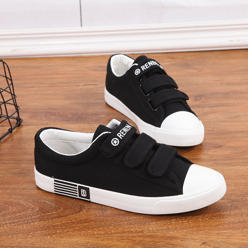 Man's sails shoes Men's shoes Men's shoes Men's shoes casual high school students Han prints Magic Sticker Small White Shoes Flat Bottom Plate Shoes Man-Taobao