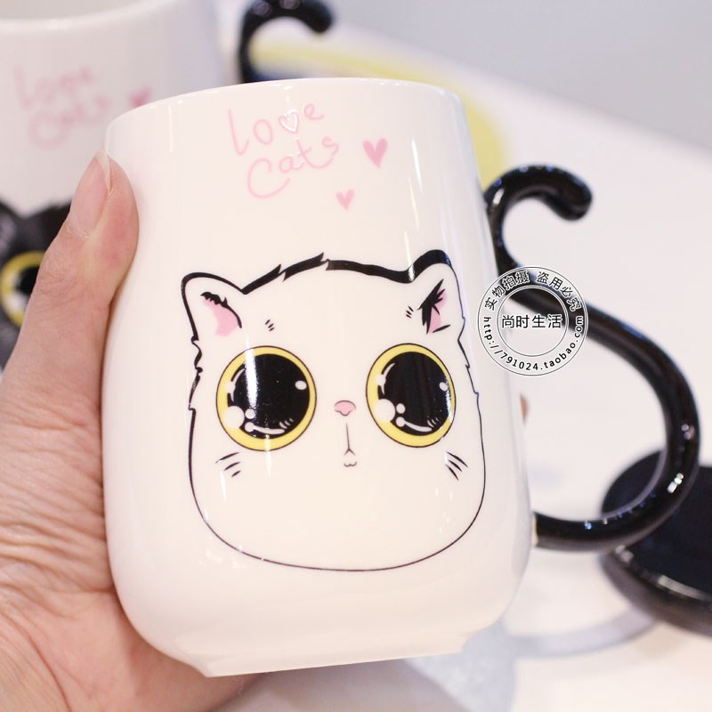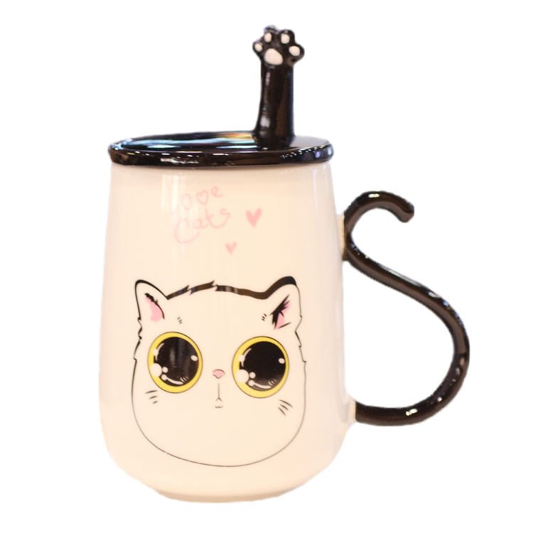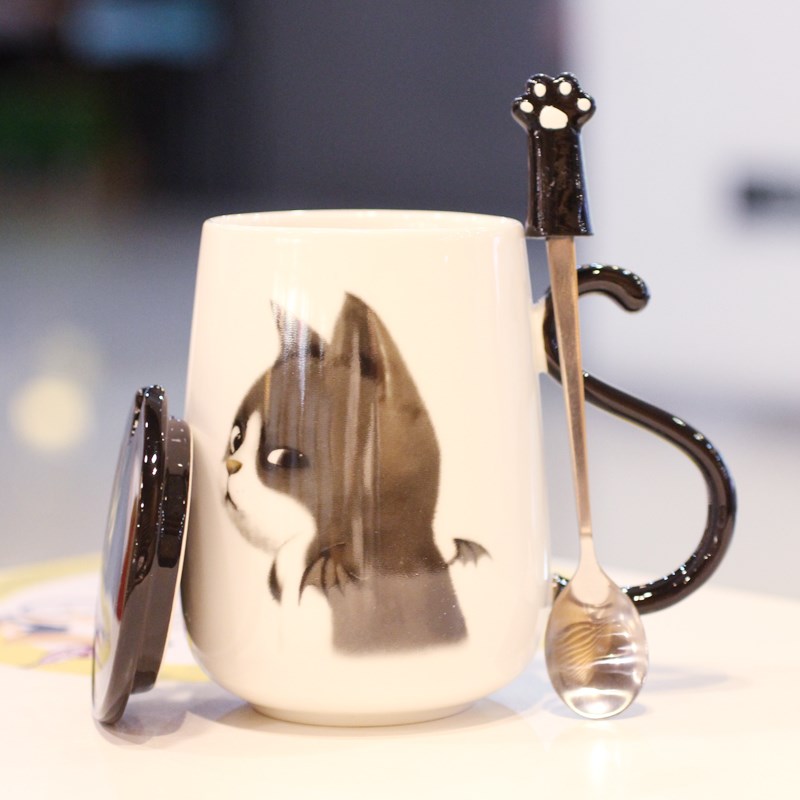 Personality Great Capacity Ceramic Drinking Water Cup With Lid Spoon Han Style Creative Coffee Cup for men and women's office Mark Cup