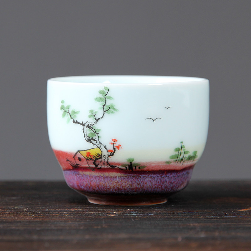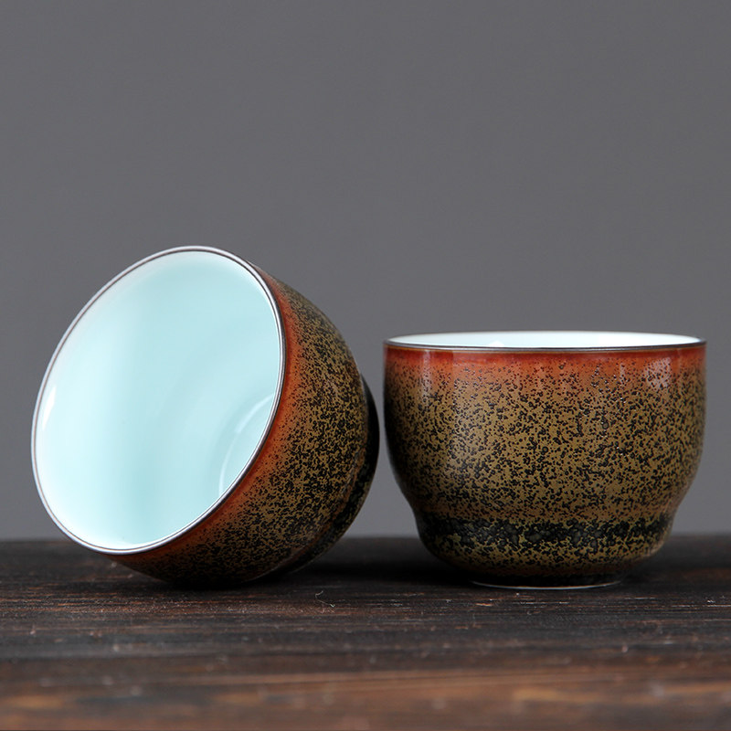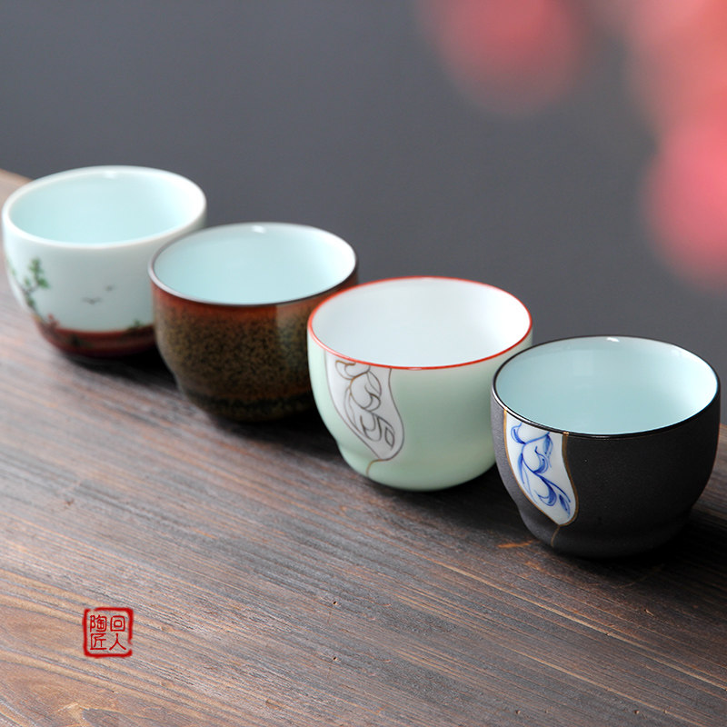Ceramic tasting cup Jingdezhen Coarse Pottery Kutiongfu Tea With Green Porcelain Hand-painted Small Tea Cup Master Cup Single Cup Tea Puer