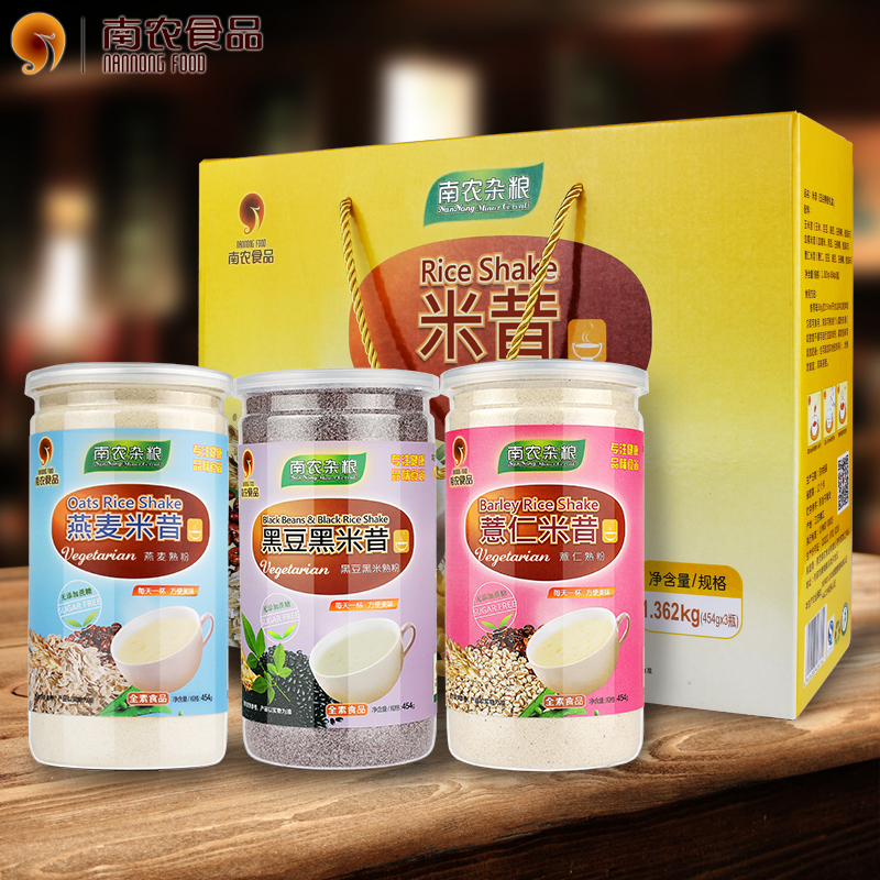 Four bags of rice glutinous rice gift box (no added sucrose) three cans of rice shakes gift box (no added cane sugar) three cans of five-grain powder gift box (no added cane sugar) six cans of five-grain nutrition gift box (no added cane sugar) six cans of rice shakes