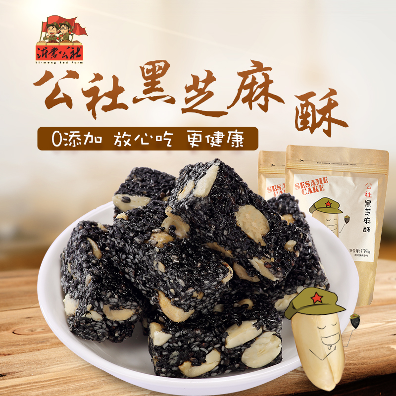 Yimeng Commune Black Sesame Crisp 135g Healthy Casual Snacks Black Sesame Candy Office Snacks