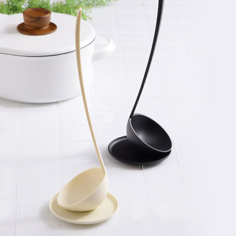 Japan imported self-standing soup spoon set heat-resistant plastic spoon serving soup long handle with spoon holder porridge spoon German Red Dot Award