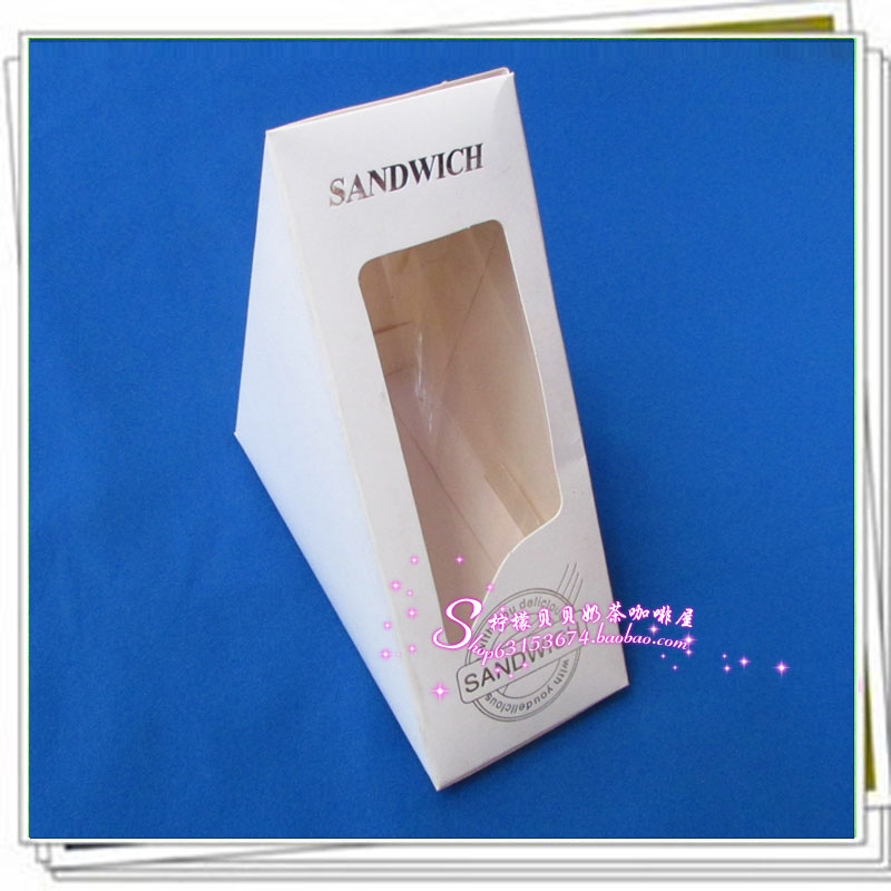 Thick paper sandwich box open window box triangle packaging box with 100 white kraft carton