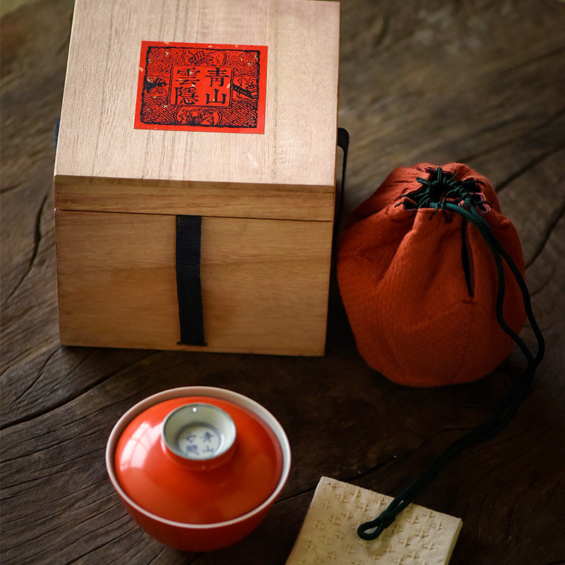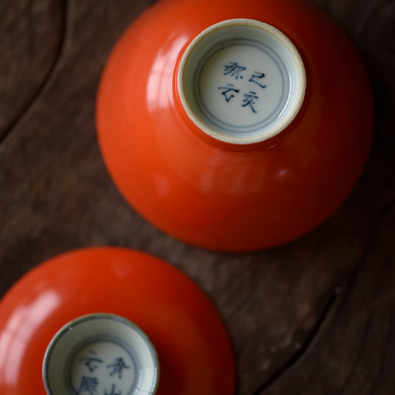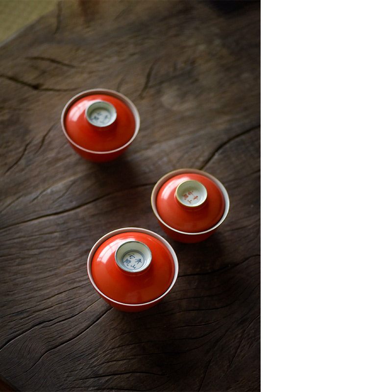 Taichu Lotus Hall Ceramic ancient glaze double persimmon red lid bowl Ancient tea bowl Brew tea bowl Foot mud