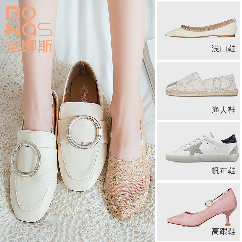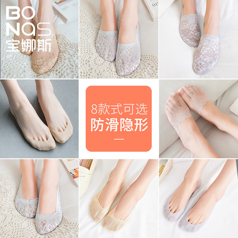 Bonas summer lace boat socks women's high heels socks bottom silicone non-slip invisible short socks summer shallow thin section