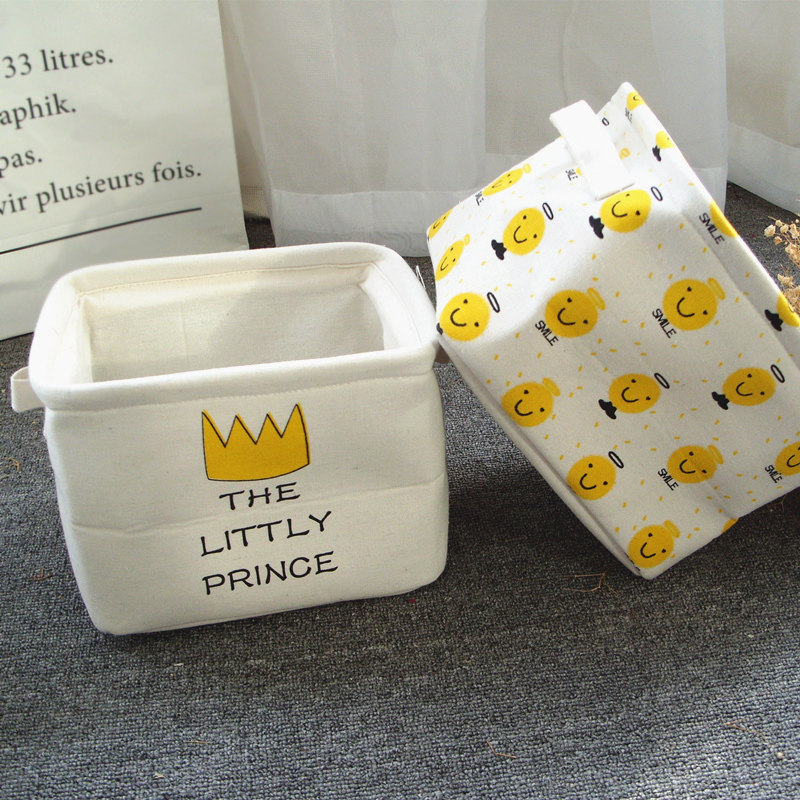 Minimalist Folding Cloth Art Cartoon Thickening with inner lining Cosmetic Snack finishing basket Desktop containing box