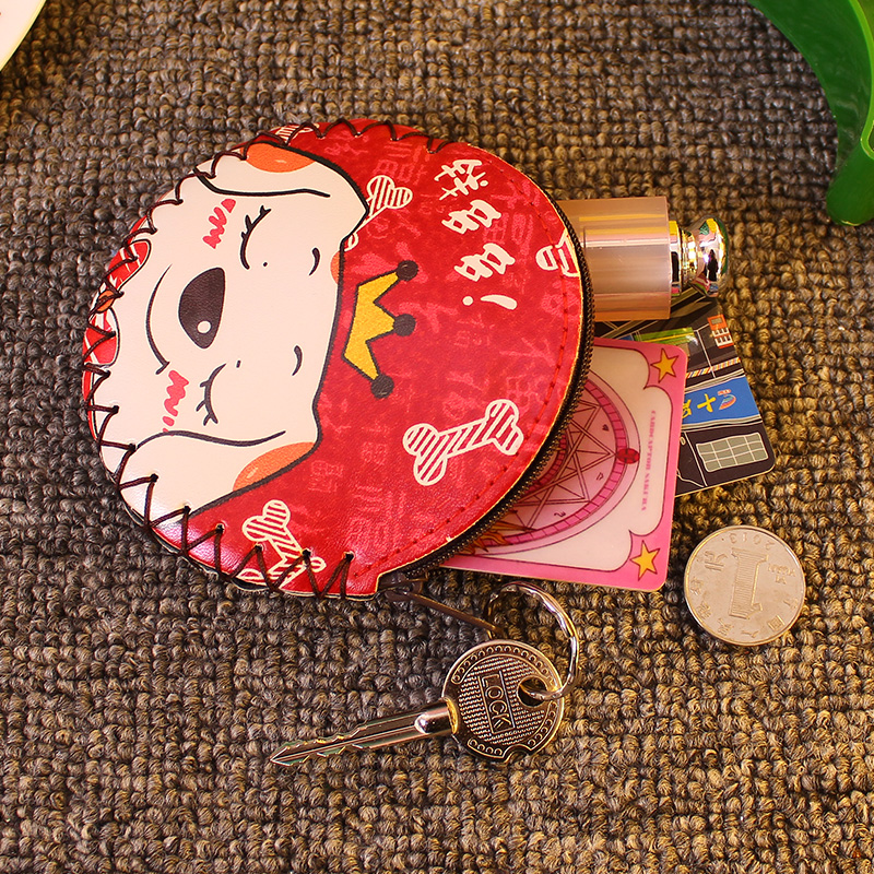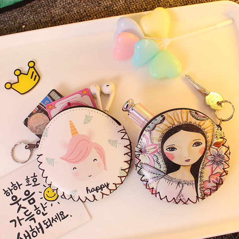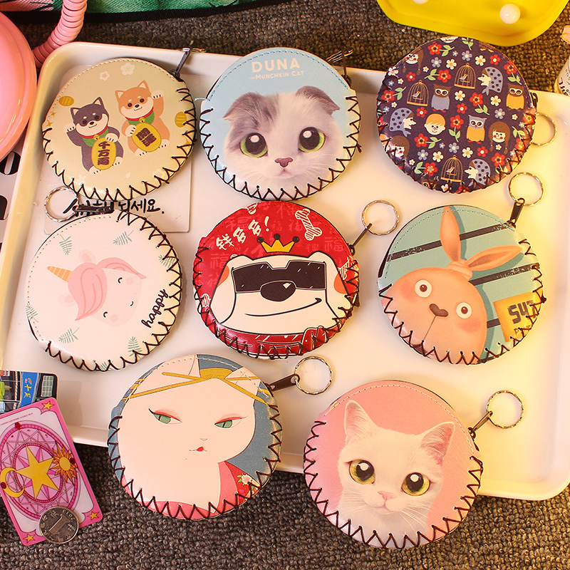 Girly Student Vintage Hand-Sewn Coin Purse Women's Mini Round Zipper Key Bag Short Coin Bag Wallet