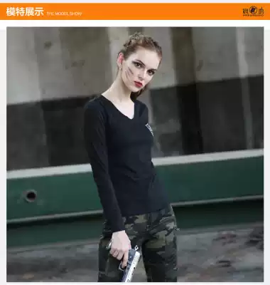 Battlefield military fans military uniform long sleeve women camouflage uniforms elite tribal women long sleeve t-shirt black V neck base shirt