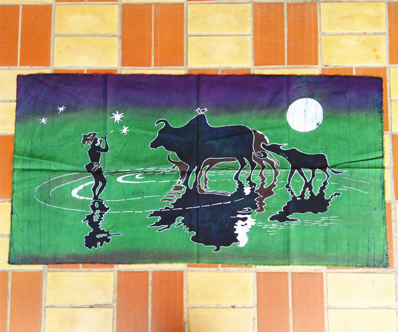Guizhou Batik painting National characteristics handicrafts Home hotel decoration painting Late return map Fishing map Batik painting