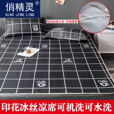 Summer ice silk mat three-piece set 1 8m bed 1 5 m foldable soft seat dormitory single Student 1 2 grass mat
